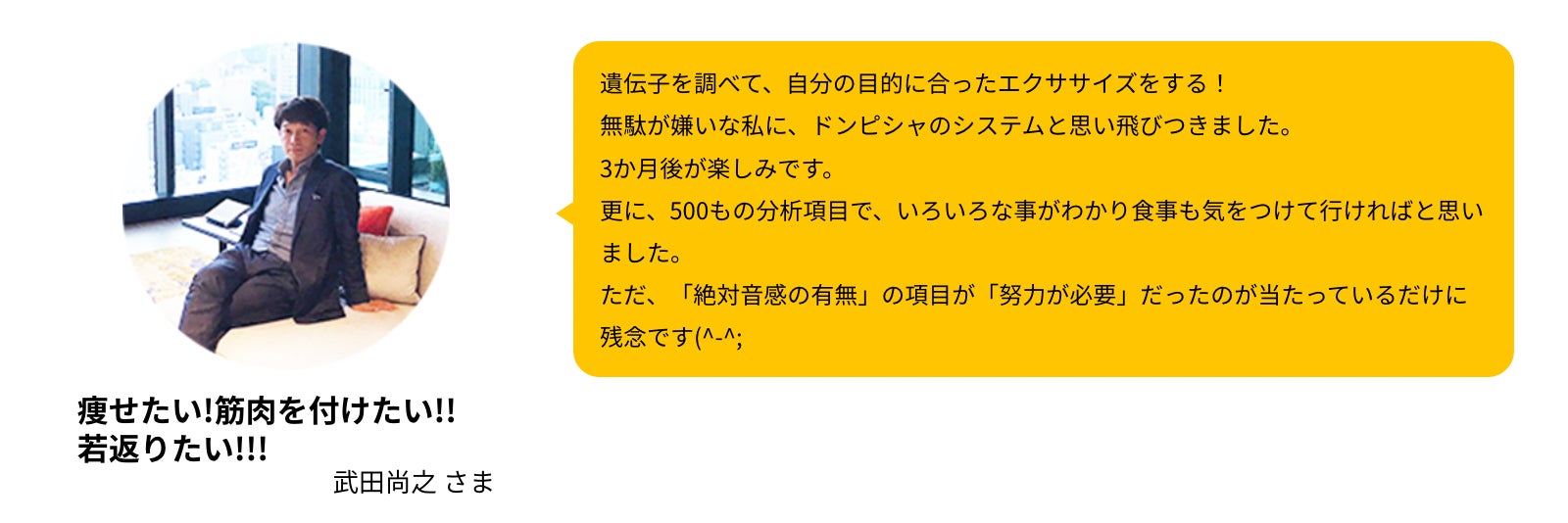 一方で、実際に利用者のニーズに応えて「個人向けに遺伝子検査付きオンラインフィットネス」を展開することで、下記悩みを解決します。